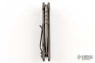 This Mark 2 Framelock by A2D Mercantile features a satin finished blade with notched thumb rest, and thumb hole. The handle has a bead blasted and textured titanium frame, titanium tip up clip. Nice detent, lockup and blade seating. Comes with cloth pouch. Has a couple light scuffs, excellent condition.