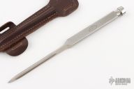This Sleeve Dagger by EK knives was produced by H.G. Long and Co. Has a satin finished triple edged triangle dagger blade with fulers. Comes with original brown leather sheath and box. Excellent condition.