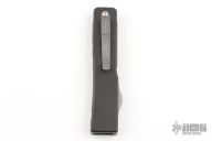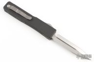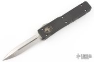 This Ultratech OTF automatic from Microtech features a satin finished double edge blade with fullers. The handle has a black anodized aluminum handle with stainless steel thumb slide and tip down clip. Dated 12/2003 with a serial number of 1331. Comes with original box and papers. Has a couple light scuffs, excellent condition otherwise.