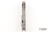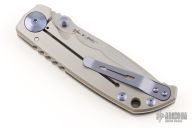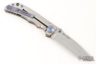 This Harsey framelock folder by Spartan Blades features a stonewashed drop point S45VN blade with dual thumbstuds and a notched thumbrest. The handle has a two tone anodized titanium frame with a laser engraving a tip up titanium clip and filler tab. Has nice detent, lockup, and blade seating. Comes with original box. Excellent condition.