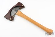 Our axes are hand forged from a block of 4142 chrome/moly alloy steel in the Blue Ridge mountains on the Western North Carolina, Eastern Tennessee line and heat treated to 55.5 HRC. The heads are hung on straight grained hickory handles made from cabinet grade kiln dried lumber. Each handle is hand fitted with a drawknife. The Saddle Axe head weighs 2.25lbs, and is hung on a 19 inch octagonal hickory handle. Octagonal handles naturally feel better in the hand, and provide better indexing. Double bit axes give you two blades in one. For example, it’s wise to save one of your blades for finer cutting work, while sacrificing the other for grub work near the ground where edge damage is likely. Double bit axes are very balanced as well. Sheaths are hand made with thick vegetable tanned water buffalo leather. 100% made in house. Overbuilt and ready to use, because overkill never fails.