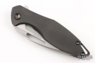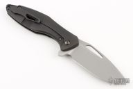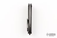 This Arius by Koenig knives features a burnished blade with PF finish, thumbhole and flipper. The handle has a nicely milled DLC titanium frame with a titanium tip up clip, DLC titanium hardware and backspacer. Has ceramic bearings and a ceramic detent ball. Nice detent, lockup and blade seating. Comes with original box and COA Dated July 25, 2024. New condition.