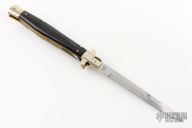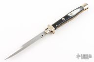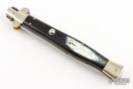 This Picklock Auto by AGA Campolin features a mirror finished blade with false top edge. The handle has horn scales, brass liners and nickel silver bolsters. Has safety. Has a couple light scratches, otherwise Excellent condition.