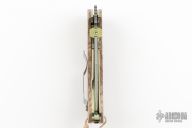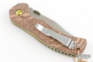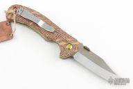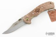 This Custom Whiskey Knife by Emerson Knives features a satin finished blade with notched thumbrest and anodized titanium thumbdisc. The handle has whiskey barrel wooden scales, anodized titanium liners, tip up stainless steel clip. Comes with original box. New condition. It comes with something else as well, call for details!