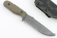 This Dreadnought by Street Knives features a acid washed blade, .202" blade stock and 1.276" blade depth, full tang construction. The handle has G-10 scales. Comes with a kydex sheath. New from maker!