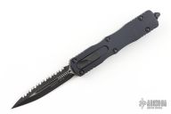This Dirac OTF automatic by Microtech features a D/E black blade with a fully serrated edge. The handle is black aluminum with stainless steel tip down clip. Serial number 4991 and dated 05/2020. Comes with original box and papers. Excellent Condition.