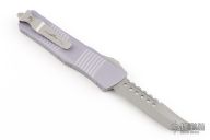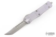 This Troodon by Microtech Knives features an apocalyptic finished Hellhound blade with satin flats and false top edge. The handle has a gray aluminum frame with tip down blasted stainless steel clip and hardware. Comes with original box and papers. 05/2019. Excellent condition.
