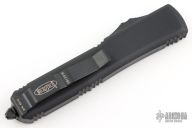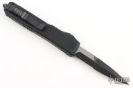 This Ultratech OTF automatic features a bayonet grind black double edge blade with a partially serrated edge. The handle has a black anodized aluminum handle. Stainless steel clip. Glass breaker. Serial number 95112, and date 06/2018. Comes with original box and papers. Excellent condition.