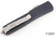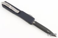 This Ultratech OTF automatic by Microtech features a D/E black blade with a double fully serrated blade. Black aluminum contoured frame with tip down stainless steel clip. Dated 10/2019 and s/n 153613. Excellent condition. Includes original box and papers.