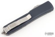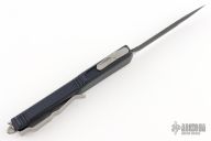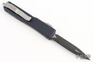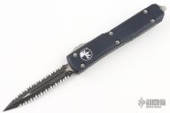 This Ultratech OTF automatic by Microtech features a D/E black blade with a double fully serrated blade. Black aluminum contoured frame with tip down stainless steel clip. Dated 10/2019 and s/n 153616. Excellent condition. Includes original box and papers.