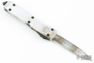 This Ultratech OTF automatic by Microtech features a D/E distressed white blade. Distressed White aluminum contoured frame with black tip down stainless steel clip. Dated 03/2022 and s/n 129. Includes original box and papers.  Excellent condition.