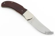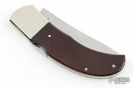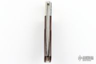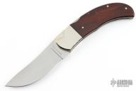 This Lockback by Browning features a satin finished blade with nail nick. The handle has nickel silver bolsters and liners, rosewood scales, and a stainless steel lock back. Includes a brown leather sheath. Has some light scratches and patina, otherwise excellent condition.