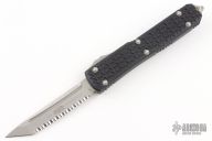 This Ultratech OTF automatic features a T/E stonewashed fully serrated blade. Has blasted hardware and stainless steel clip. Glass breaker. S/N 57762. Date 07/2015. Comes with an unlabled MT box. Has some scuffs and scratches, great condition otherwise.