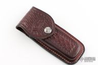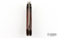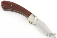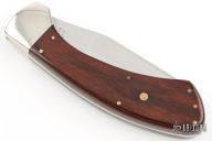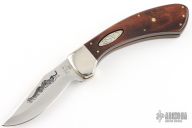 This Case folder features a satin finished drop point blade. Nickel Silver front bolsters, wood scales with a Case escutcheon lock release. Brass liners and steel springs. Includes original sheath. Has a couple light scratches, otherwise excellent condition.