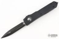This Ultratech OTF automatic by Microtech Knives features a D/E blade with a standard edge and an all black tactical finish on the blade and handle. Black stainless steel clip. Glass breaker. S/N 89167 and dated 01/2018. Comes in the wrong MT box. Has some light scuffs, excellent condition otherwise.