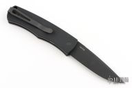 This BR-1.7 Whiskers Design by Protech Knives features a black 154CM blade, false top edge. The handle has a black aluminum frame with a black aluminum bolster release, stainless backspacer and tip up black stainless clip. Lanyard hole at the butt. PR8#1165.Comes with original box and papers. Has some scuffs and scratches, great condition otherwise.