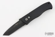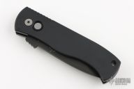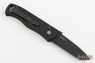 This Emerson/Pro-Tech CQC7 automatic has a chisel ground black DLC finished blade with a plain edge and a solid black aluminum handle. Black stainless steel clip. Coil spring. Excellent condition. Comes with original box and papers.