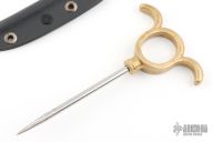 This SOE Ring Spike by GHK features a differentially hardened Stubbs Tool Steel tool steel spike with .215" diameter. The handle is high tensile manganese bronze. Comes with a kydex sheath. Excellent condition.