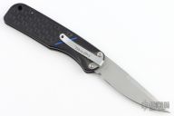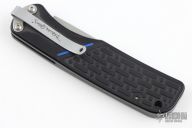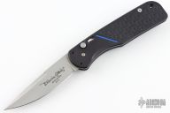 This stylish Blackie Collins designed automatic knife features an incredibly thin and lightweight handle that is ideal for everyday carry. The handle is black anodized aluminum with a nice texture for grip and a safety lock for the blade. Includes a deep carry pocket clip (tip-down). The bead blast finished ATS-34 stainless steel blade has a plain cutting edge. From what we understand Randall King's company has a hand in the production of this knife. Has a few light scuffs, otherwise excellent condition.
