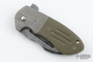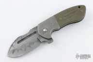 This Dauntless by Michael Burch features a drop point blade with hamon and flipper.  The handle has a stonewashed titanium bolster and lockside with an orange peel finished tip up titanium pocket clip.  The handle has a green G10 scale and backspacer.  Includes the original box.  Excellent Condition.