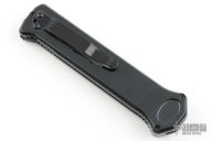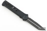 This OTF is a fantastic model with a USA cutout on the black anodized aluminum body with black hardware/clip and a black coated blade with partially serrated top edge.