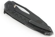 This Sigil by Microtech Knives features a DLC blade with thumb hole, flipper and notched thumbrest. The handle has a DLC aluminum and stonewash finished titanium frame, tip up clip and backspacer with a matching overtravel stop, stainless lockface insert. Comes with original box and papers. Light scratches are visible on the handle and the blade otherwise the knife is in excellent condition. S/N 1734 and dated 12/2017.