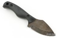 This Bush Hog by Ankura Knife Co features an apocalyptic finished hollow ground blade with .142" blade stock and 1.604" blade depth, full tang construction. The handle has carved black canvas micarta scales. Excellent condition.