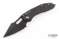 This Stitch Auto by Microtech Knives features a DLC tumble finished blade and false top edge, notched thumb and finger rests. The handle has a black anodized and milled aluminum handle with a bronzed titanium backspacer and stainless steel clip, tip up carry, lanyard hole at the butt. Comes with original box and papers dated 09/2017 and S/N 2840. Excellent condition.