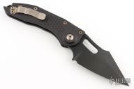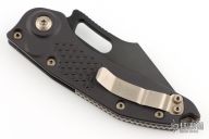 This Stitch Auto by Microtech Knives features a DLC tumble finished blade and false top edge, notched thumb and finger rests. The handle has a black anodized and milled aluminum handle with a bronzed titanium backspacer and stainless steel clip, tip up carry, lanyard hole at the butt. Comes with original box and papers dated 06/2017 and S/N 1774. Excellent condition.