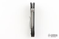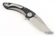 This Whaleshark flipper by Microtech features a satin finished partially serrated blade with flipper and dual thumbstuds. The handle has a black G-10 frame with bead blasted titanium backspacer and tip up clip. Smooth and fast flipper that requires no wrist action. Nice detent and blade seating. Dated 03/2012 and #00156. Comes with original box, papers, and sheath. Has a couple light scuffs, otherwise Excellent Condition.