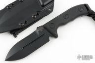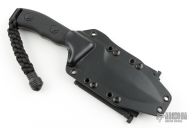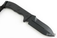 This Crosshair by Microtech has a black double edged blade with a standard edges and a black handle. Full tang construction. Comes with kydex sheath, box and papers. Excellent condition. Dated 11/2012 and #01029.