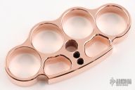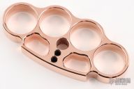 This Model #11, 4-finger knuckle by WK21 is made from solid .500” thick 110 Copper. The dimensions are approximately 4.25” x 2” x .5” with 1" diameter finger holes. Polished finish. Woody Knuckle design and finishing process. Individually boxed. 100% Made in the USA. New from maker.