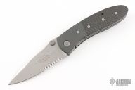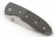 This Lightfoot LCC D/A side opener by Microtech has a stonewashed partially serrated blade, black titanium bolsters, and carbon fiber scales. Stainless steel clip and liners. Dated 06/2001 and #5741. Comes with original box, papers, and nylon sheath. Excellent condition.