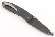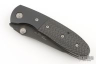 This Lightfoot LCC D/A side opener by Microtech has a black blade, black aluminum bolsters, and carbon fiber scales. Stainless steel clip and liners. Dated 10/2002 and #7991. Comes with a Lightfoot MT nylon belt sheath, and zipper case. Has a couple light scuffs, excellent condition otherwise.