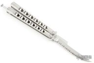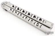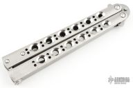 This Model 42 Balisong by Benchmade features a satin finished blade with swedge. The handle has an integral skeletonized titanium handles with spring latch on pommel. Includes original Benchmade box and nylon sheath.