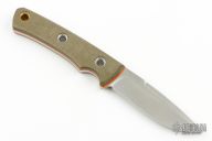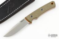 This Foreman by Vehement Knives features a satin finished blade with a false top edge, full tang construction, .125" Blade Stock, .875" Blade Depth.  The handle has green canvas micarta scales with orange G-10 liners. Includes a black leather sheath.  Includes original box and papers.  Dated May 3rd, 2024.  Excellent Condition.