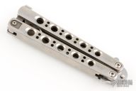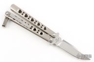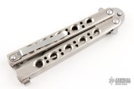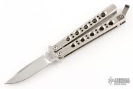 This model 31 balisong by Benchmade features a stonewashed clip point blade with a false top edge. Has titanium handles with a stainless steel clip, tip up carry. Comes with original box. Has scuffs, scratches, and a couple dings. Good condition otherwise.