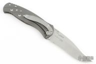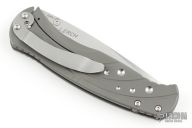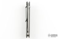 The Subrosa is a collaboration project between Ken Steigerwalt and Matt Lerch. They have patent pending status on this mechanism. They sold the manufacturing rights to Benchmade, who produces factory versions utilizing this mechanism. The key elements that make this assisted mechanism a cut above are the two titanium leaf springs connected together with a hardened roller that engages on the blade. Because the roller follows the blade during the opening and closing motion, there is little to no wear to the components. Tumble finished S30V stainless steel partially serrated drop point blade with single thumb stud. Milled titanium frame with titanium barrel-type spacers, and bead blasted stainless steel tip down clip. Comes in a zipper case. Has scuffs and scratches, great condition otherwise.