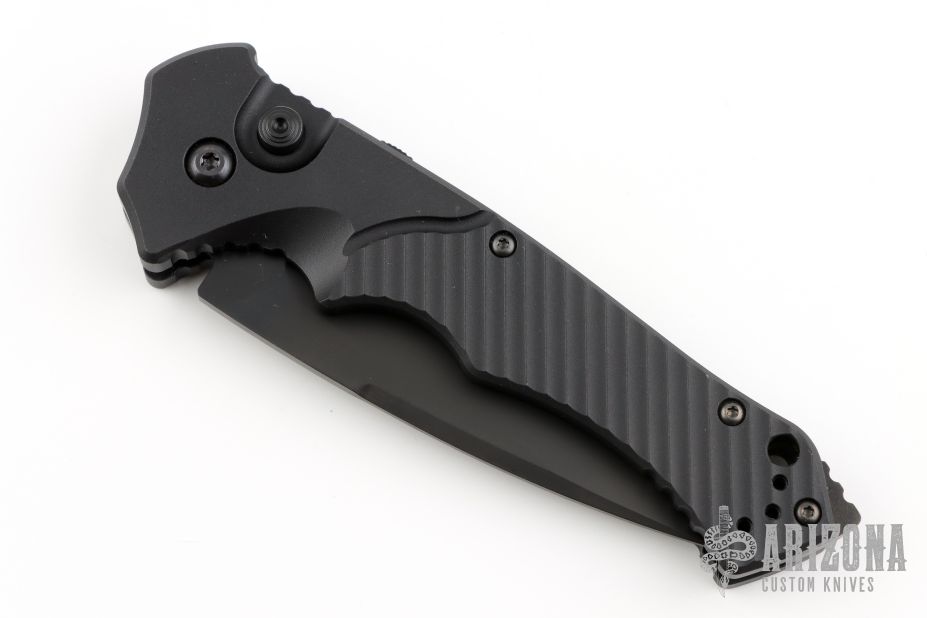 This knife has a custom DLC finished blade and handle. It was professionally resharpened with serrations.