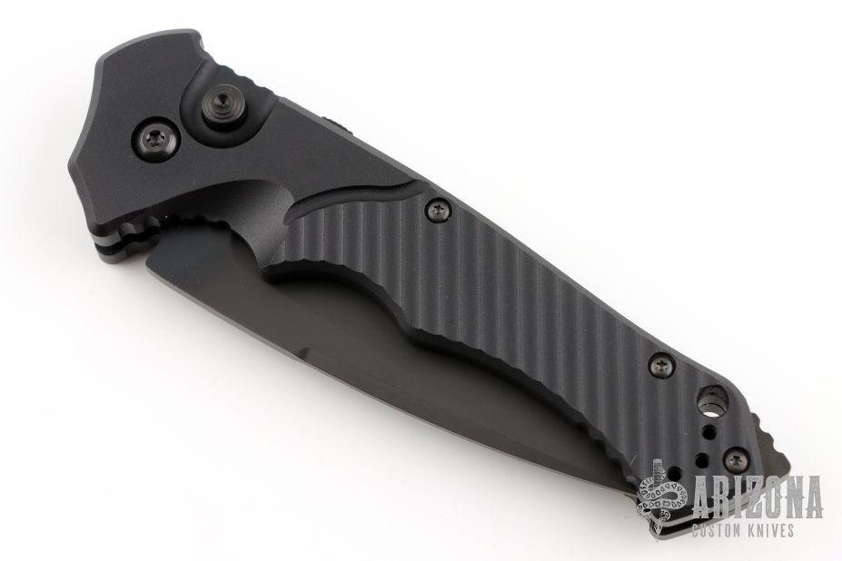 This knife has a custom DLC finished blade and handle.