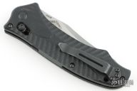 This Osborne designed Rift from Benchmade features a stonewashed clip point blade and sculpted black G-10 scales, black stainless steel liners and tip up reversible clip. Includes original box, drawstring pouch and papers. Has some light scuffs and scratches, great condition otherwise.