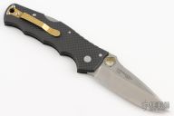 Featuring the same high quality blade steel as the Golden Eye, with the same rich dual-tone line grain finish and contrasting brass HTR™ thumb ramp, but replacing the G-10 handle with costly carbon fiber scales. Carbon Fiber, with its excellent strength-to-weight ratio, provides a perfect balance between good looks, comfort and class, with impressive durability and all-round toughness. The Golden Eye Elite is an everyday carry blade that’s a perfect choice for when you are wearing a suit or slacks. A great knife for church, a wedding, a date, or just any time you want to add that extra level of flash and elegance to your gear without sacrificing performance or reliability.
