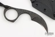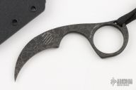 This Diagnostic Neck Knife from Bastinelli features a karambit style PVD coated chisel ground blade with false top edge and notched thumb rest. The integral style incorporates a handle with a pronounced index finger choil and 1-inch finger hole for secure grip. Lanyard hole, lanyard and bead provide for increased grip/retention. Includes kydex neck sheath and original box. Excellent condition.