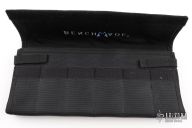 Now you can keep all of those Benchmades in one place... This soft carry-case holds up to 11 folders. It's shell is constructed of a heavyweight denier and is stitched plenty strong for lasting wear. A deep plush interior lining ensures scratch-free storage. A total of eleven, 1.50 x 5-inch pockets, with six pockets featuring a split-window for easier small knife retrieval. Velcro® flap closures holds everything in place and proudly displays the Benchmade name embroidered on its face. Excellent condition.