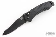 This Osborne designed Rift from Benchmade features a black coated clip point blade and sculpted black G-10 scales, black stainless steel liners and tip up reversible clip. Includes original packaging and paperwork. Clip is a little bent out. Has a couple light scuffs, excellent condition otherwise.