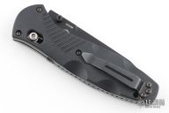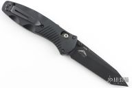 This 583 Barrage from Benchmade features a black tanto blade with swedge and dual thumbstuds. The handle is comprised black FRN scales over stainless steel liners and FRN backspacer. This knife also features the AXIS lock mechanisim and sliding safety on spine. Comes in a zipper case. Has a couple light scuffs, excellent condition.