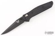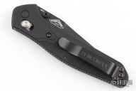 This Osborne designed Benchmade feautres a black plain edge blade, black aluminum handle, tip up reversible stainless steel clip. Axis lock mechanism. Comes with a zipper case. Has a couple light scuffs otherwise excellent condition.