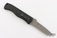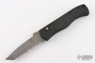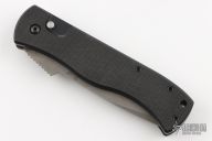 This Emerson Design CQC7 Auto by Benchmade features a chisel ground tanto bead blast blade with a partially serrated edge and notched thumb-rest. The handle has black G-10 scales and a black stainless steel clip, tip down carry. Includes a nylon sheath. Excellent condition.