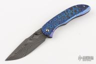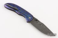 This Jolt from Jonas Iglesias features a Chad Nichols San Mai Damascus blade with dual zirconium thumbstuds. The handle has a Black Timascus frame with a floating zirconium backspacer and tip up clip with hidden screws, custom milled pivot. Rides on bearings, nice detent, lockup and blade seating. Excellent condition. Comes with a zippered case.