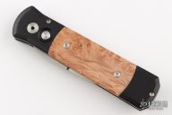 "Like Father, Like Son. This is the highly anticipated 3.25" blade version of our popular Godfather automatic knife. Italian Inspiration and American Innovation have created another superior coil spring action auto knife." This Godson side opening coil-spring automatic features a satin finish blade and anodized black frame with maple burl inlays. Black stainless steel clip. Comes with original box and papers. Excellent Condition.